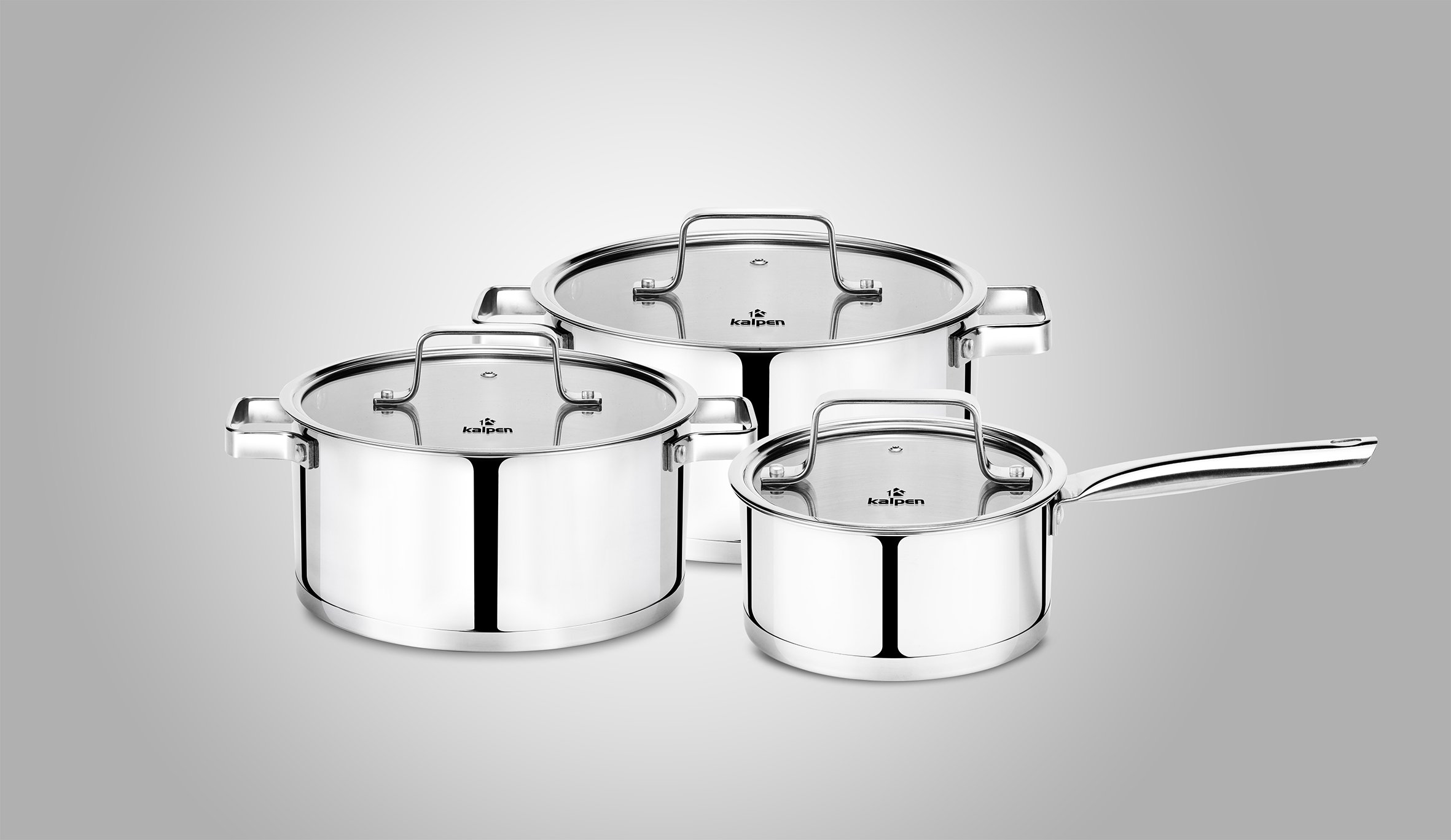 Bộ nồi inox 304 cao cấp 5 đáy Kalpen Gliter tự hào là sản phẩm gia dụng chất lượng cao chính hãng – công nghệ Đức. Chất liệu bền bỉ, thiết kế thẩm mỹ sáng bóng. Bộ nồi inox 304 cao cấp 5 đáy Kalpen Gliter KP-3568 bao gồm 2 nồi 1 quánh phù hợp cho tất cả các căn bếp gia đình Việt.